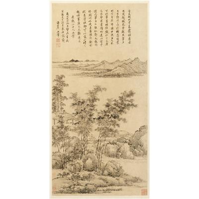 清_八大山人(朱耷)_仿郭恕山水图轴